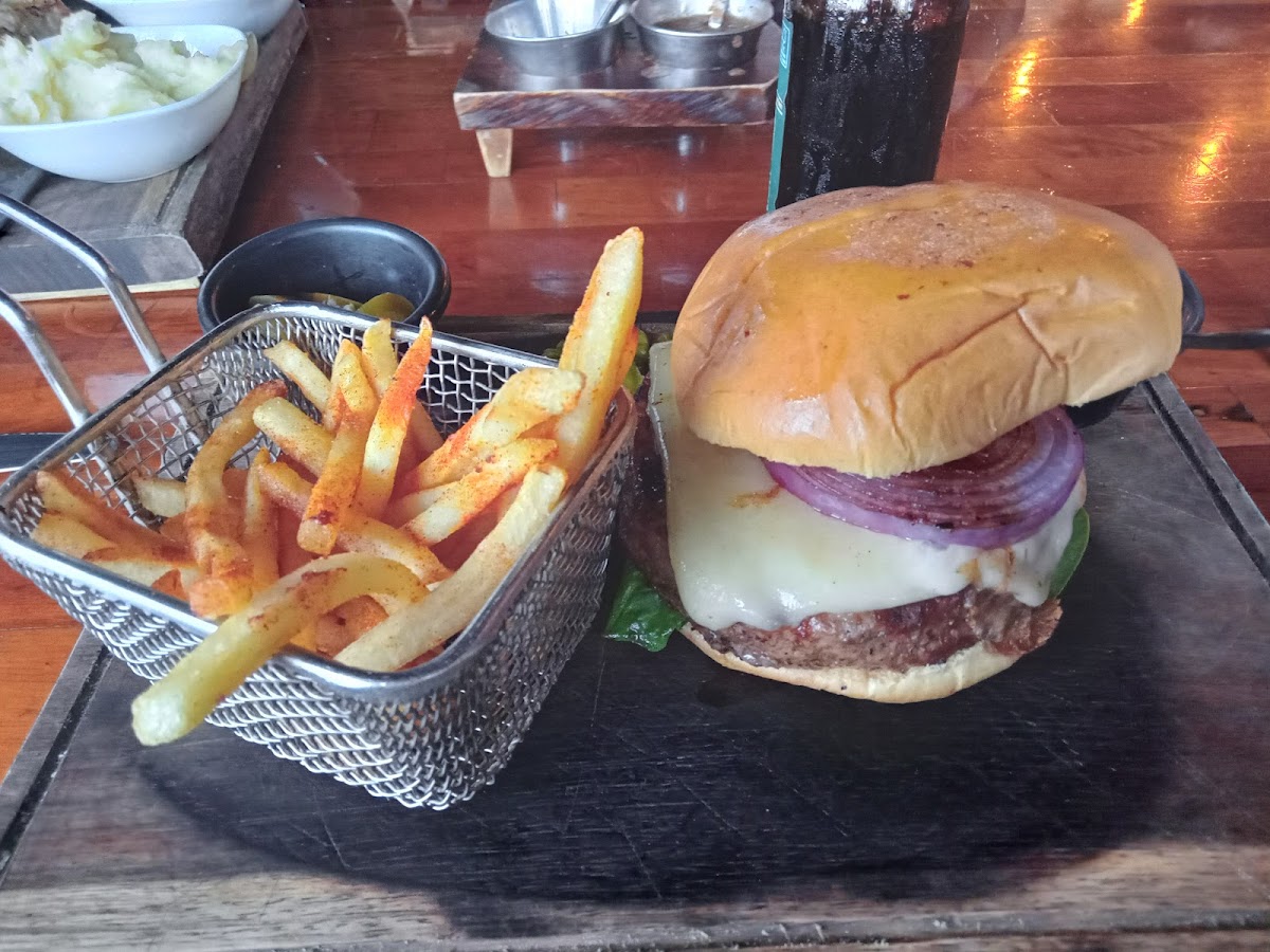 I came here for lunch at 1PM. I came to the restaurant very hungry and left the restaurant very happy and full. The service was very friendly. I ordered the hamburger which was fire-grilled to perfection. The burger included onion, bacon, cheese and spinach which happens to be my favorite combination. The salsas were amazing and the fries were thin, crispy and seasoned perfectly. I will be back for dinner to try the steaks another day. For now, I have "mal de puerco". :D